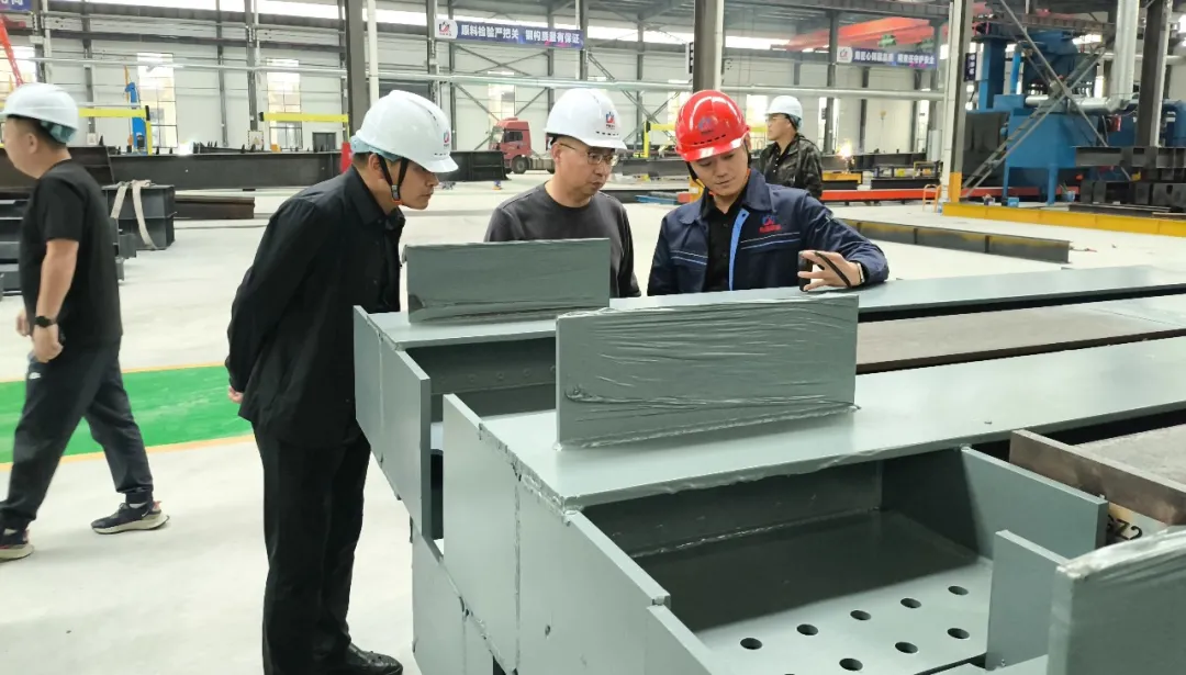 為確保關(guān)鍵鋼結(jié)構(gòu)部件質(zhì)量,10月5日,項目指揮部統(tǒng)籌施工、監(jiān)理及技術(shù)專家團隊,專程赴河南長葛鋼結(jié)構(gòu)加工基地開展實地督導(dǎo)。考察組深入生產(chǎn)車間,對原材料檢驗、切割精度、焊接工藝、除銹噴涂等關(guān)鍵環(huán)節(jié)進行全面驗廠,并與制造方開展深度技術(shù)交底,從源頭嚴把質(zhì)量關(guān),為項目穩(wěn)步推進提供堅實的供應(yīng)鏈保障。